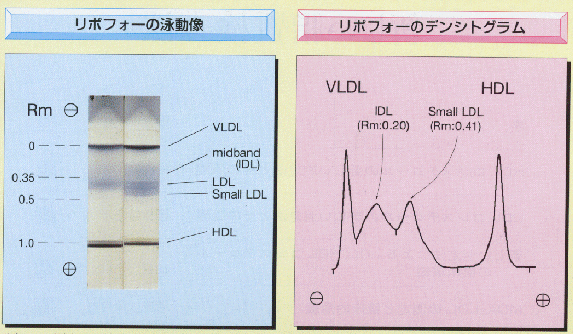 ています。デンシトグラムを見て,血中のリポ蛋白質の状態を泳動像から予測して