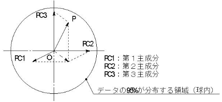 全施設における各分画の基準値を求め、各施設の個々の分画値と基準値との差を算出し、5分画分の差のデータを合成し、独立した3つの主成分のベクトルとして表現する。それを合成し、1個のベクトルとして表現したもの
