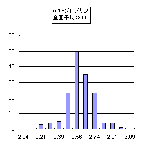 【'99年度全国の分画値分布 機種名:CTE-700/780/ALC-760 支持体:セパラックスSP (n=152)】