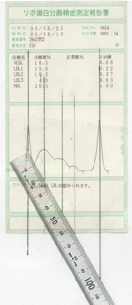 CLDL、HDLを除いた各ピークから引いた垂線が、ものさしと交 叉するところの