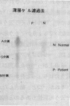 これはきたなくて申し訳ないんですけれども発色の色を変えましてノーマルパターンと本患者のLDH活性がノーマルでは分画付近で・・・。