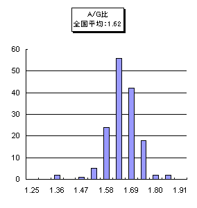 【'99年度全国の分画値分布 機種名:CTE-700/780/ALC-760 支持体:セパラックスSP (n=152)】
