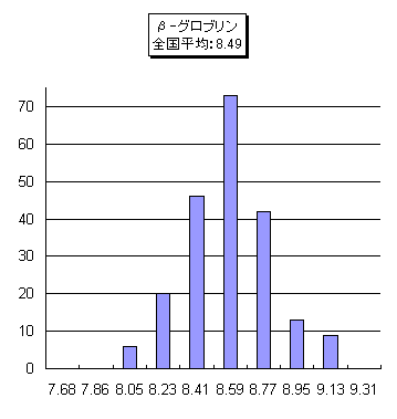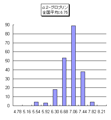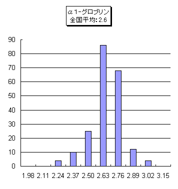 【'00年度全国の分画値分布 機種名:CTE-700/780/ALC-760 支持体:セパラックスSP (n=209)】