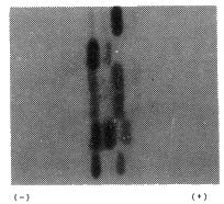 Amylase Zymogram(Jan 16,1990) ![]() | 最初に私共が経験しましたdominant P2の症例を紹介したいと思います。これは1990年の1月16日のザイモグラムでありますが、下から2番目のレーンにP2バンドが非常に高活性の症例があることが分かるかと思います。対照的に上から2レーン目、これは急性膵炎の患者さんがたまたまいたんですけれどもP1が非常に高くS型アミラーゼがあまり無い症例と非常に対照的かと思います。この様な症例がいわゆるdominant P2と云われるパターンであります。 |