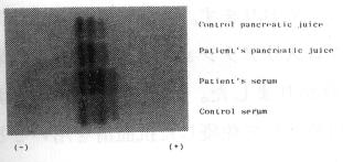 Amylase isoenzyme patterns of patient's serum and pancreatic juice